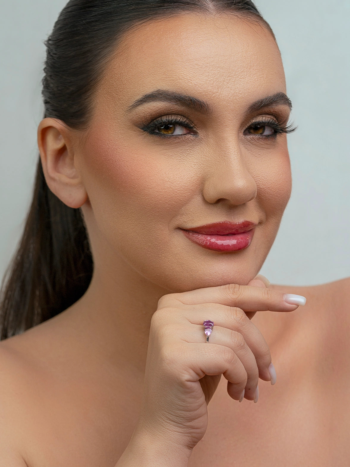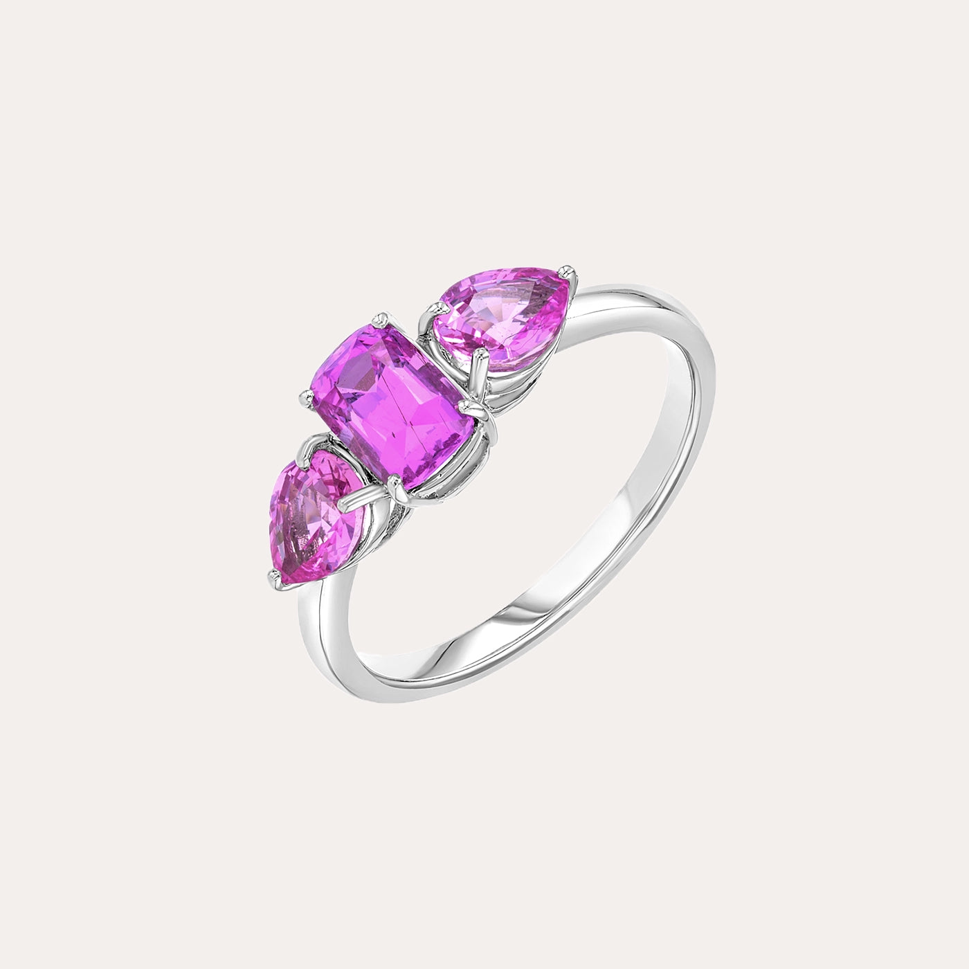 خاتم من ثلاثة أحجار من الياقوت الوردي