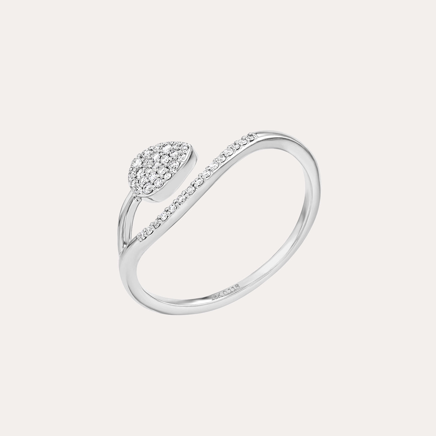 خاتم أنيق مفتوح التصميم، يتميز بنقشة ورقة شجر رقيقة مرصعة بألماس مرصوف. مصنوع من الذهب الأبيض عيار 18 قيراطًا، ويضفي...