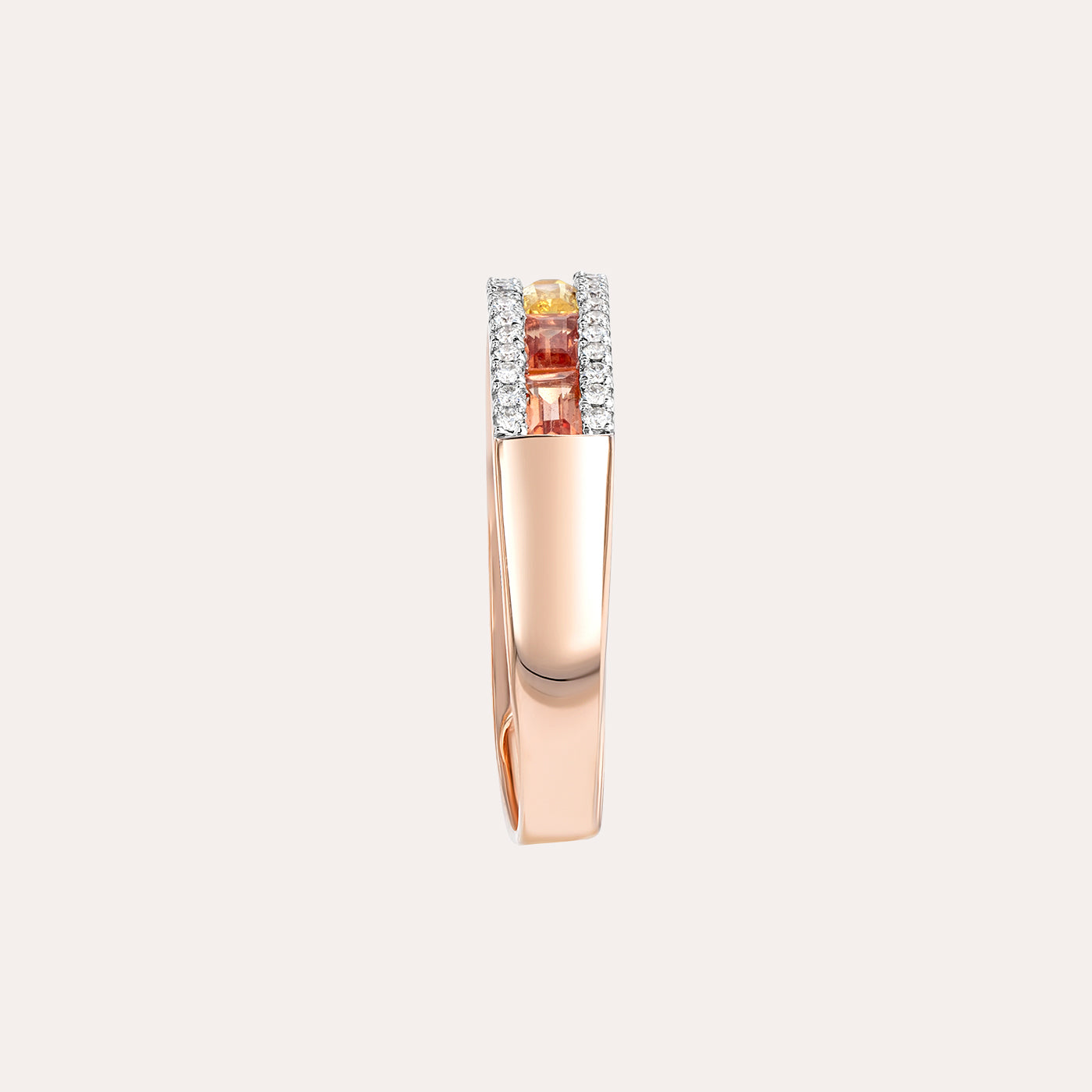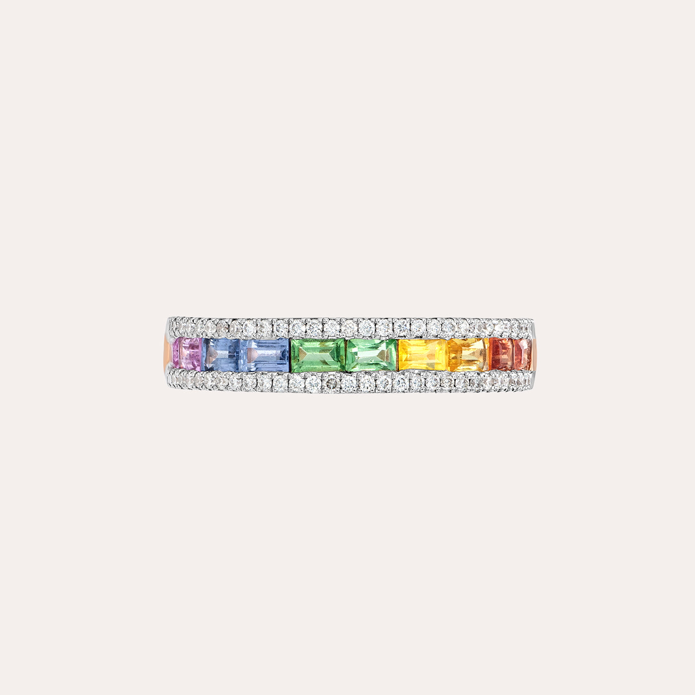 يُجسّد هذا الخاتم الأنيق، بتصميمه الراقي، مزيجًا متناغمًا من الألوان والبريق، حيث يضم صفًا متناسقًا من أحجار الياقوت...