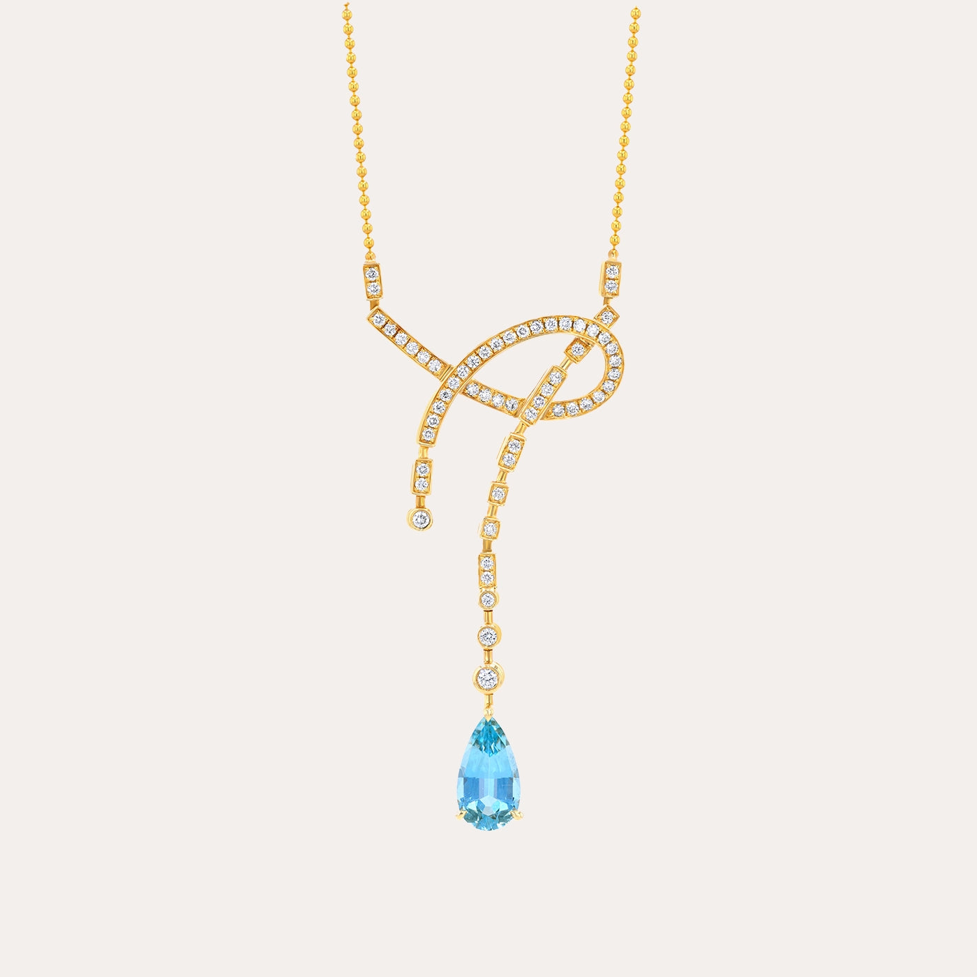 Breathtaking and refined, the Aquamarine and Diamond Pendant showcases a luminous aquamarine beautifully complemented by the brilliance of diamonds. Set in polished 18k yellow gold and paired with a matching chain, this elegant design captures timeless sophistication, making it a luxurious statement piece for any occasion.