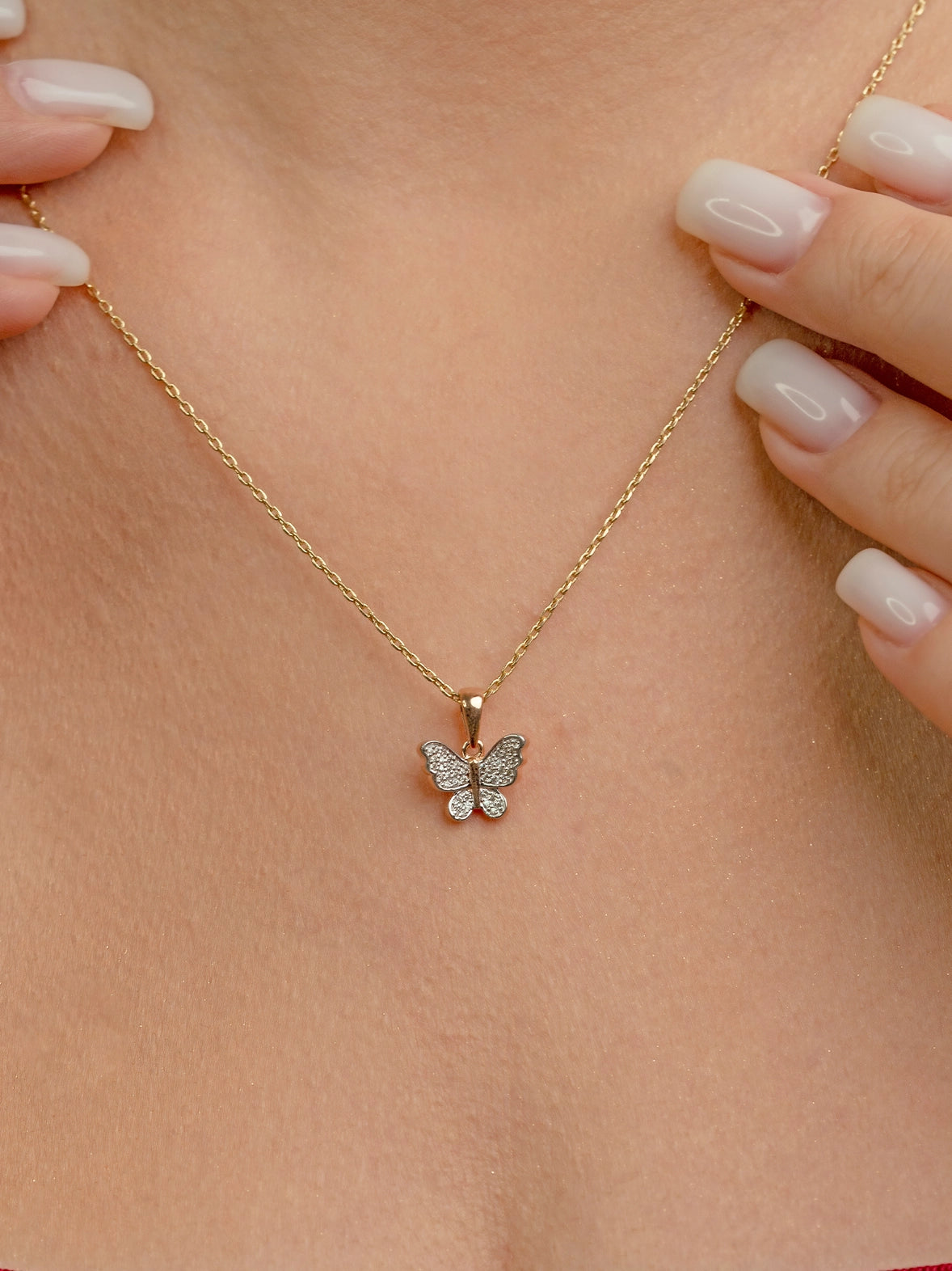 Delicate and graceful, this butterfly pendant symbolises transformation and elegance. Crafted in 18K rose gold and ac...