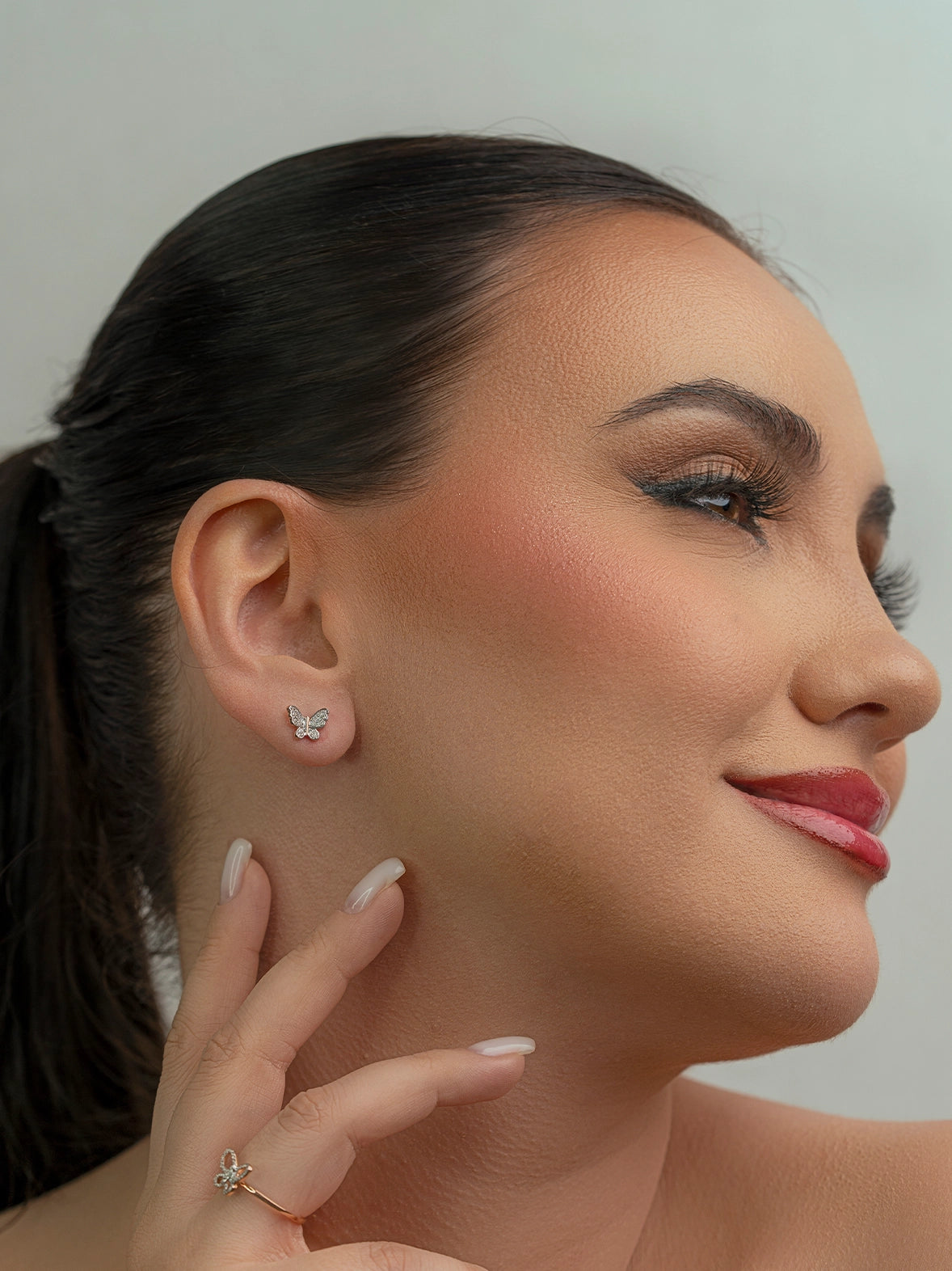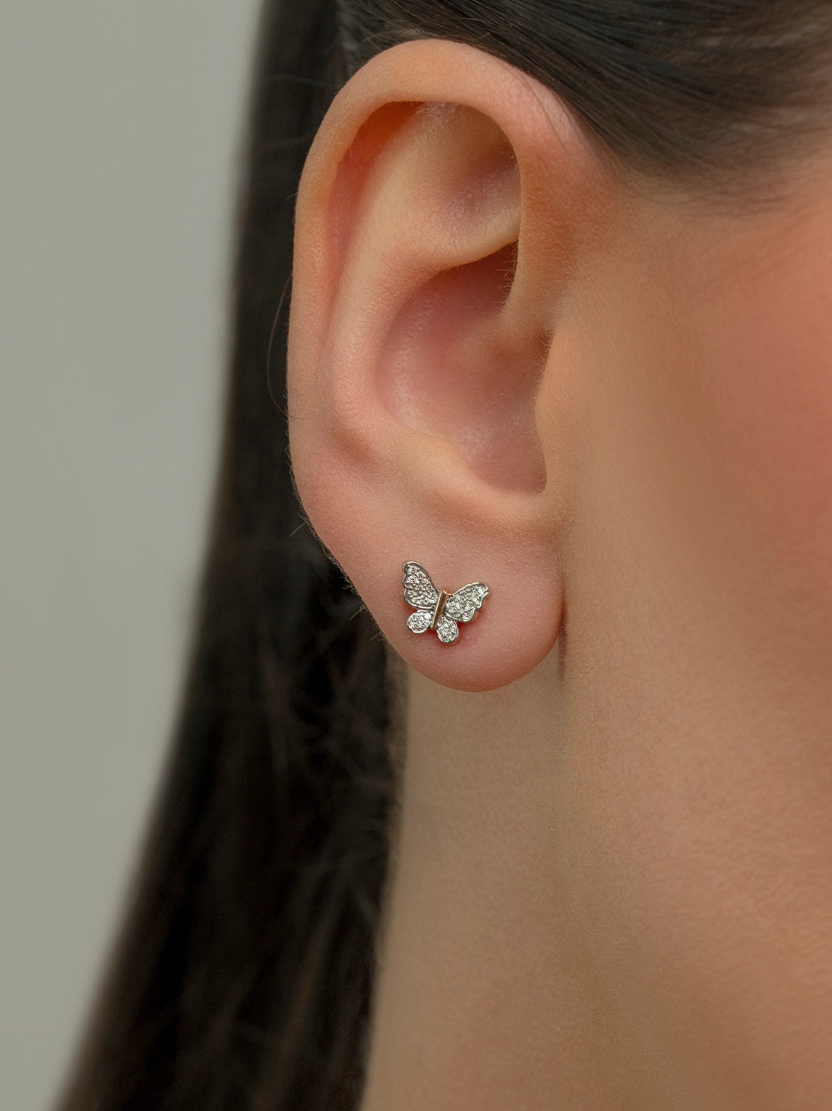 Graceful and feminine, these butterfly stud earrings are crafted in 18K rose gold and delicately set with sparkling d...