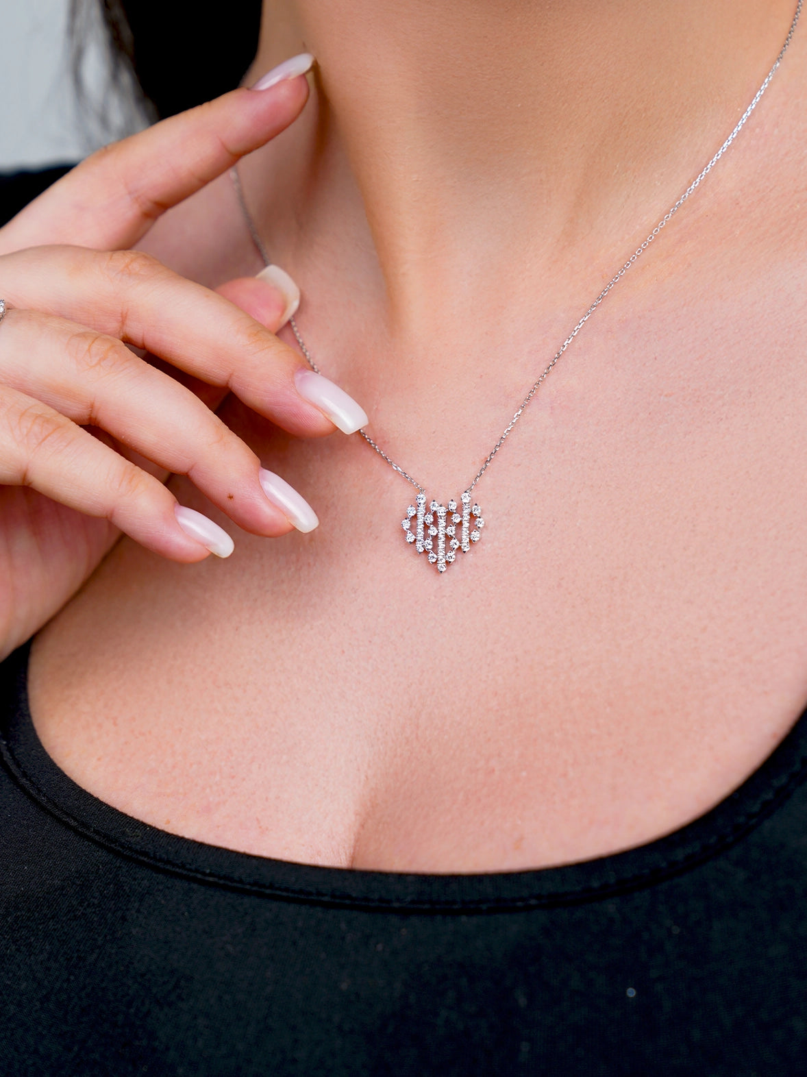 A refined diamond pendant with matching 18k white gold necklace, featuring brilliant diamonds for a graceful and timeless statement from Esna Jewellery.