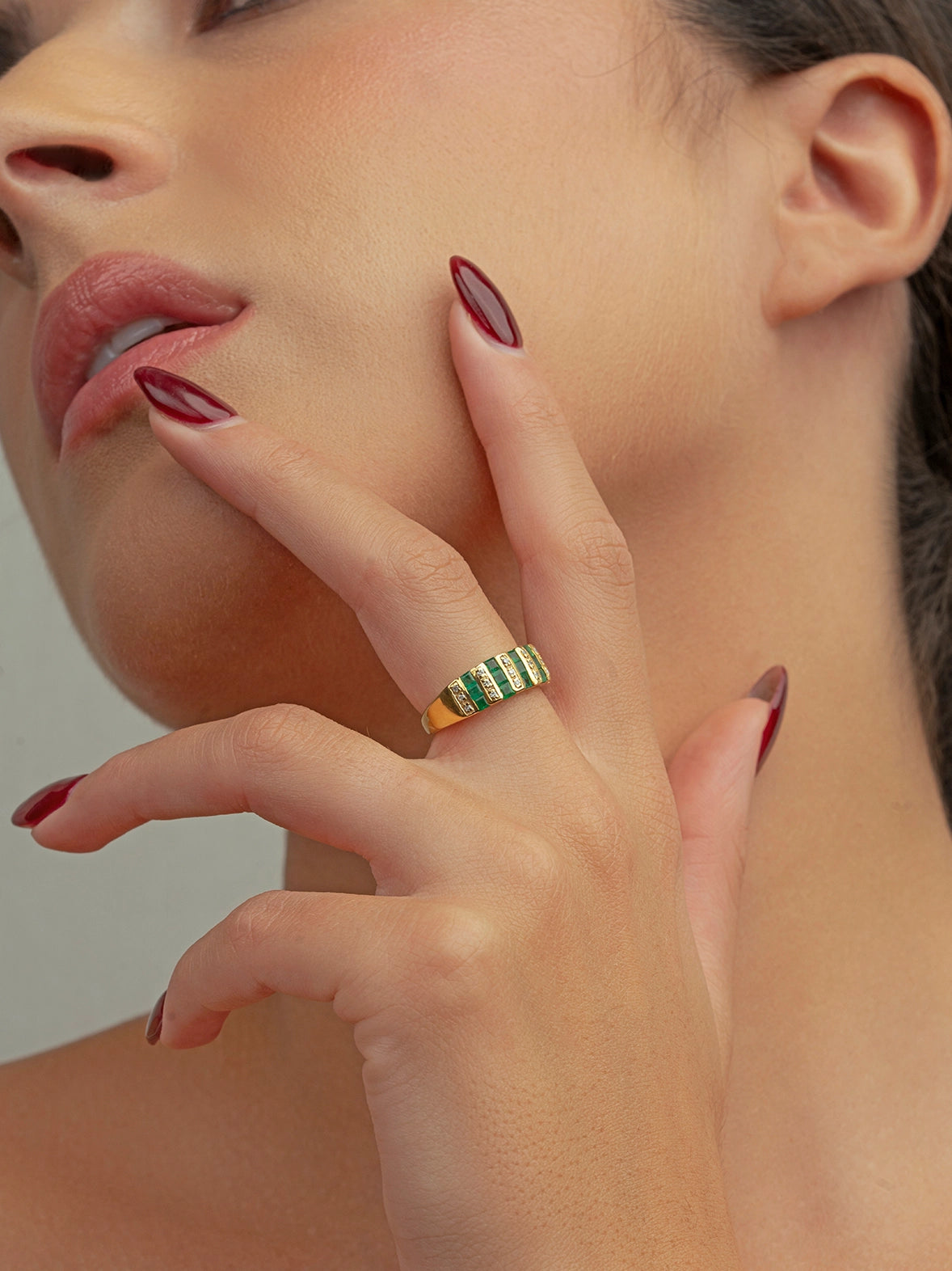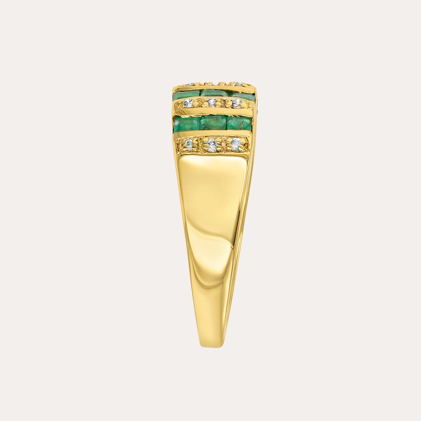 Refined and radiant, the Emerald & Diamond Elegance Ring highlights the natural beauty of a lush emerald, subtly ...