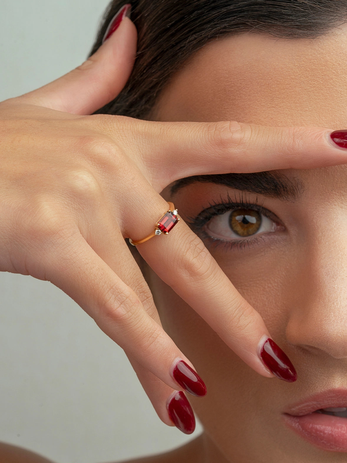 Delicate yet expressive, the Garnet and Diamond Ring showcases a rich garnet accented by subtle diamond sparkle. Set ...
