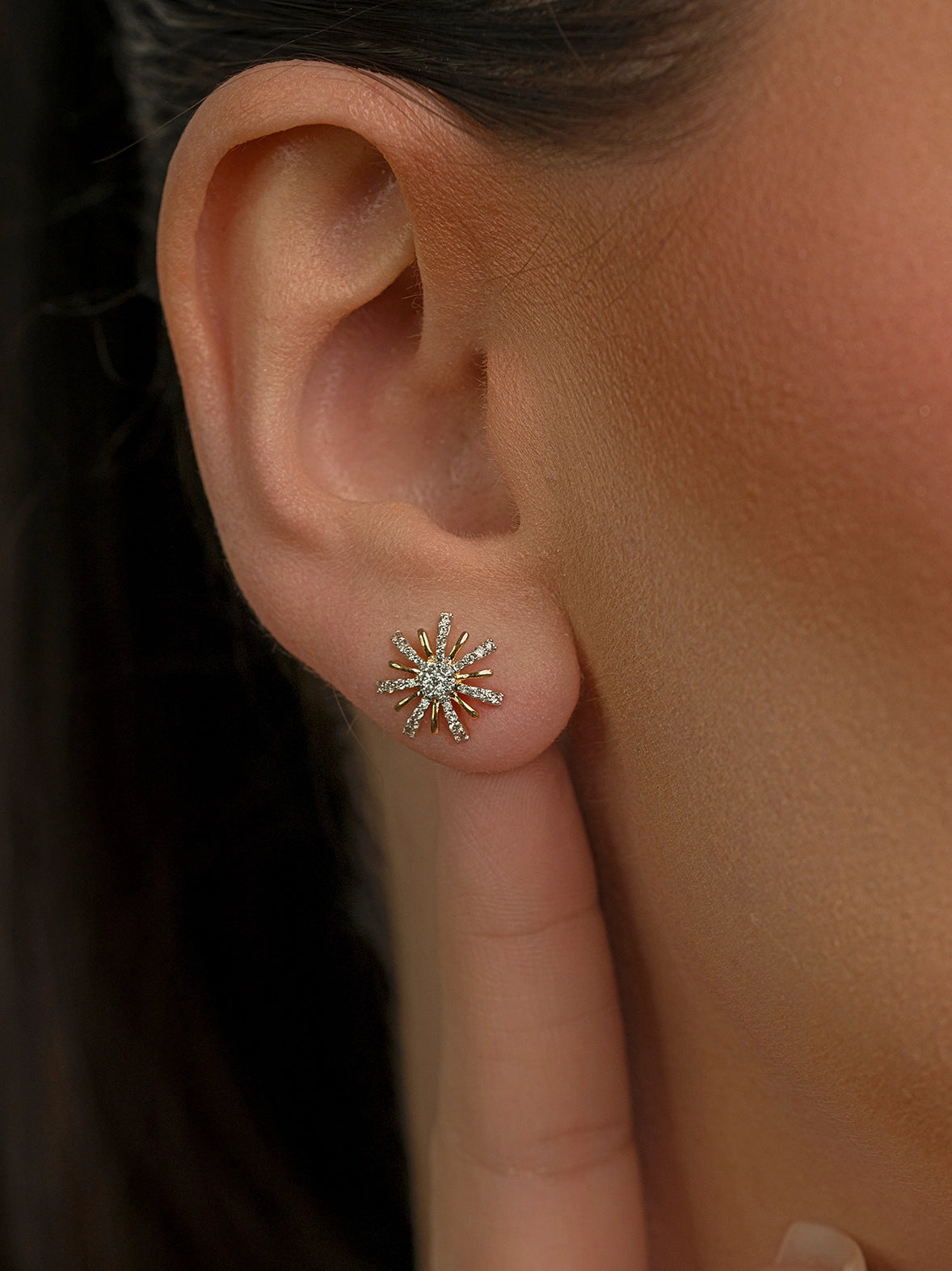 These elegant sunburst stud earrings are crafted in 18K yellow gold and set with brilliant diamonds that radiate from...