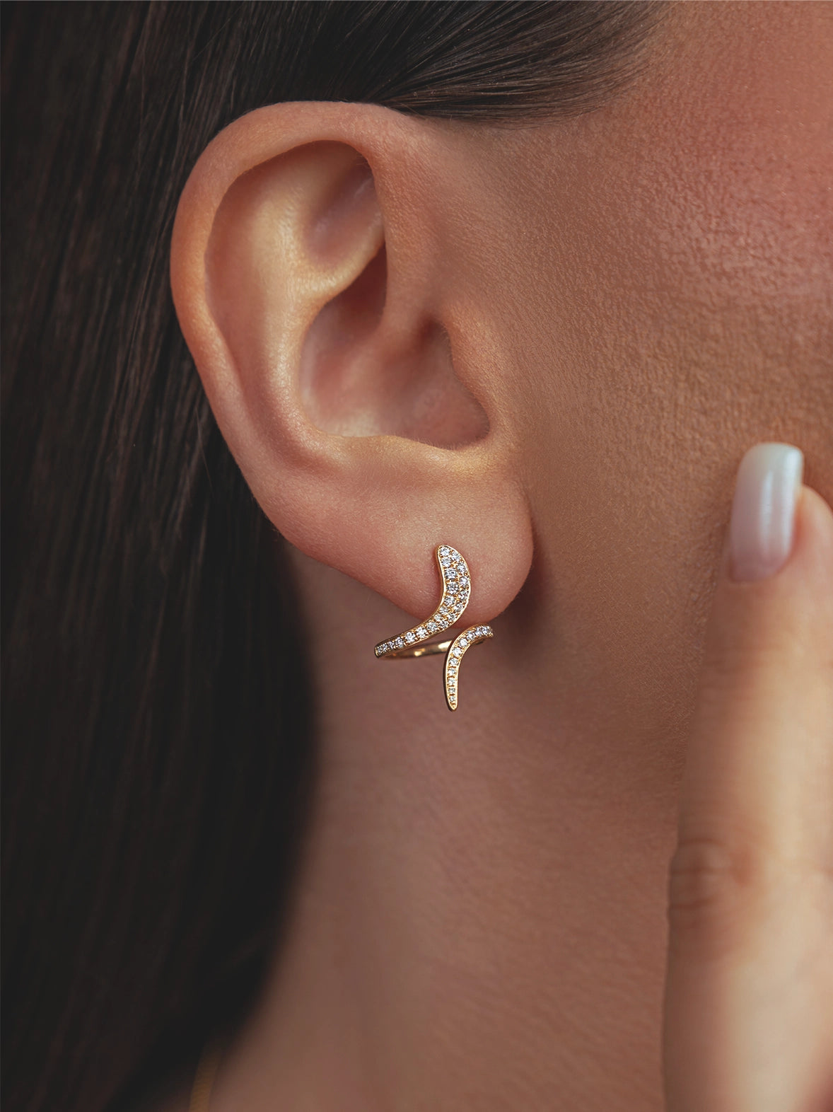 A classic pair of diamond earrings crafted in 18k yellow gold, featuring 0.447 carats of sparkling diamonds for effortless elegance and timeless appeal from Esna Jewellery.